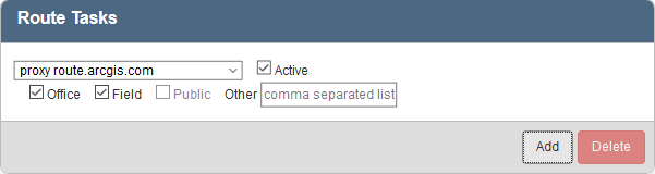 - To add a new route task, click Add on the Route Tasks panel.