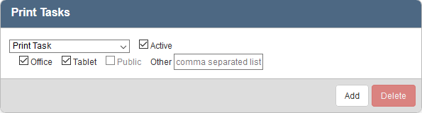 - To add a new print task, click Add on the Print Tasks panel.