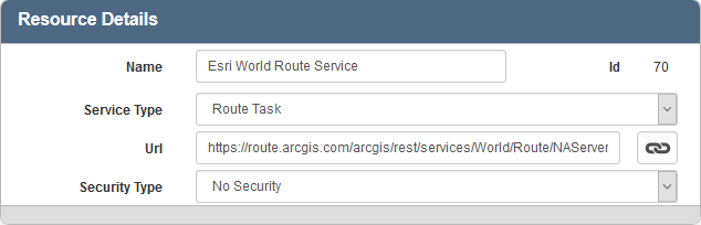 - Select the new resource from the GIS Service Resources panel to finish entering the Resource Details.