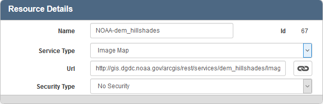 - Select the new resource from the GIS Service Resources panel to finish entering the Resource Details.