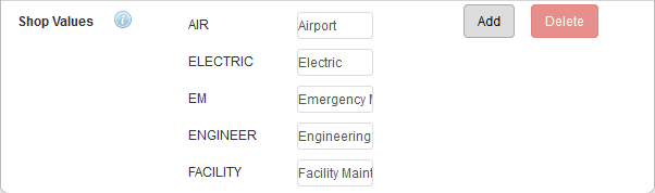 Add Shop Values to populate the Shop drop-down list on a service request, or a work order.