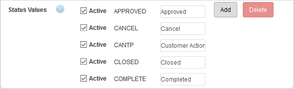 IMPORTANT: The values Cancel and Closed must not be deleted, but the description can be changed.
