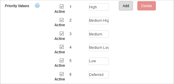 Add Priority Values that can be assigned to a service request, work order, or custom inspection.