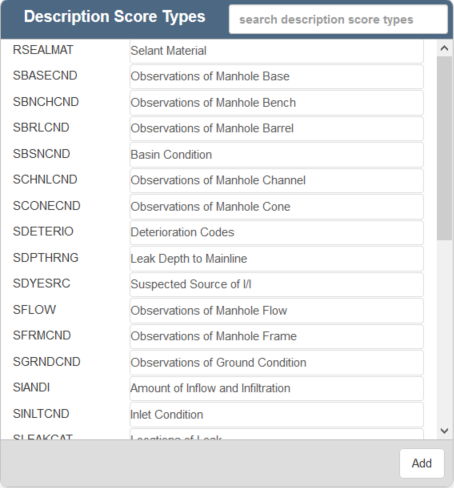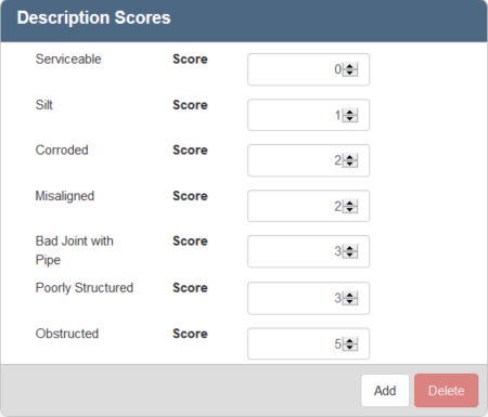 Description Scores is used to assign scores for descriptions on standard inspections.