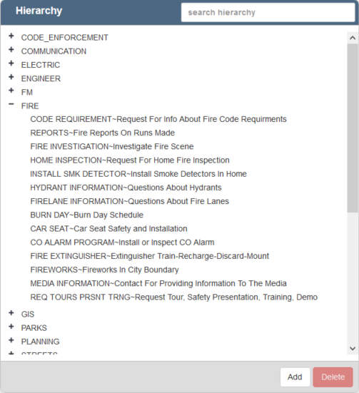 The template hierarchy is used to organize service request templates into categories. You can use the hierarchy to look up a template when creating a service request, and to find a template when searching for existing service requests.