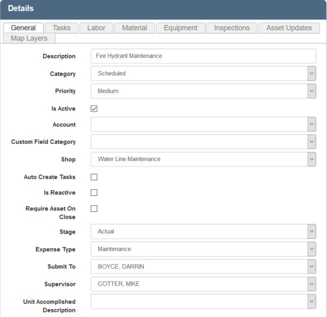 For an explanation of fields on the General tab, see Work Order Template Fields.
