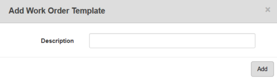 - Click Add on the Templates panel. A new work order template can also be cloned from an existing template. See Clone a Work Order Template for more information.