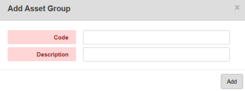- Click Add Group to add a new asset group. Enter a Code and a Description and click Add.