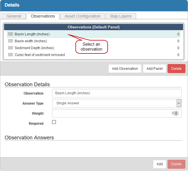 The Observation Details section displays, along with existing answers in the Observation Answers section.