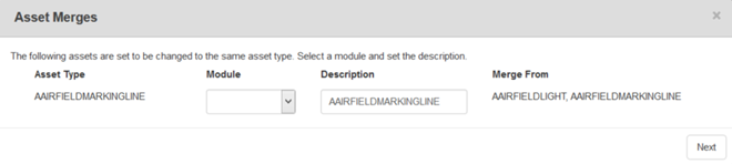 If more than one asset type has been changed to the same asset type, the Asset Merges window is shown for each group of asset types being merged.