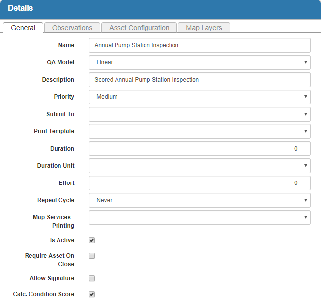 For an explanation of fields on the General tab, see Inspection Template Fields.