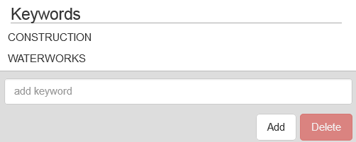The Keywords section of the Contractor Details panel is used to add keywords for a contractor.