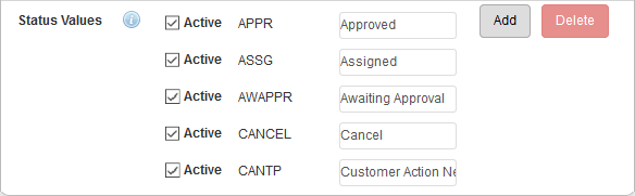 Add Status Values that can be assigned to a work order.