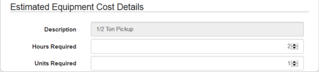 - If you select a piece of equipment unrelated to a contractor, enter the number of Hours Required and Units Required for the template in the Estimated Equipment Cost Details section.