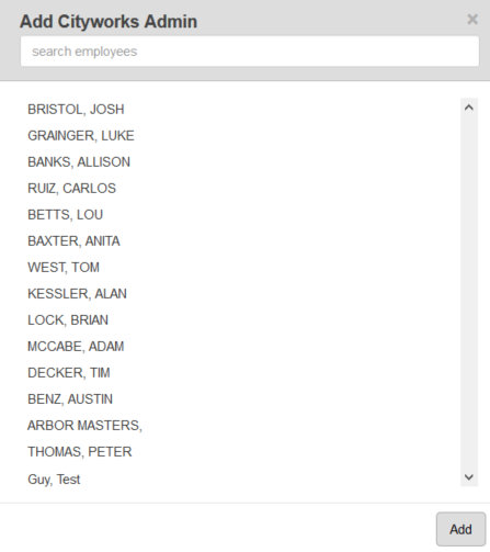 - Select the employee from the list. You can filter the list by typing the first few letters of the employee's name in the search field. Click Add.