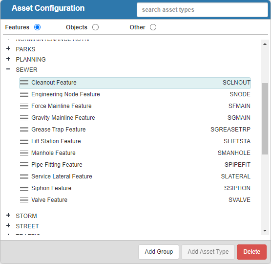 - In the Asset Configuration panel, expand an asset group and select the desired asset type you'd like to reassign.