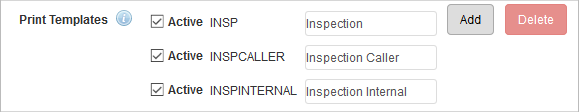 - Enter the Code and Description for the print template. The Code must be the actual file name of the template, minus the extension.