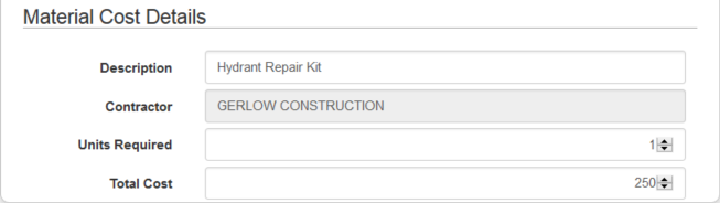 - If you select a piece of material unrelated to a contractor, enter the number of Units Required for the template in the Material Cost Details section.
