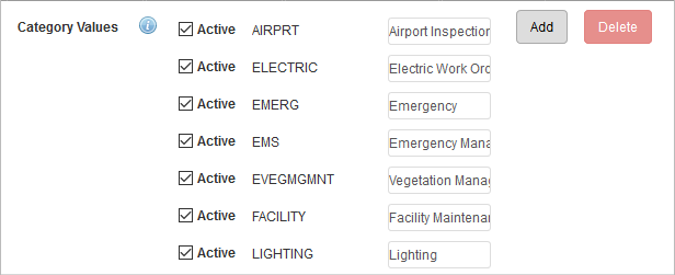 Add Category Values that can be assigned to a work order.