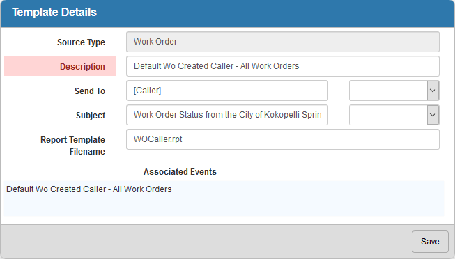 Email templates define the details of the email that is sent when triggered, such as recipient, subject line, content, etc. For example, you may create an email template to send an email to the supervisor when the Submit To on a work order is changed.