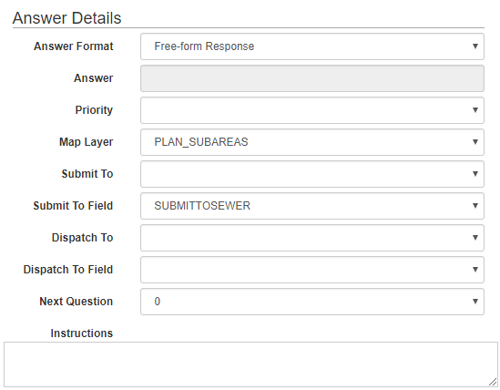 If this answer is selected when the service request is created, the Submit To or Dispatch To populates with those values from the GIS.