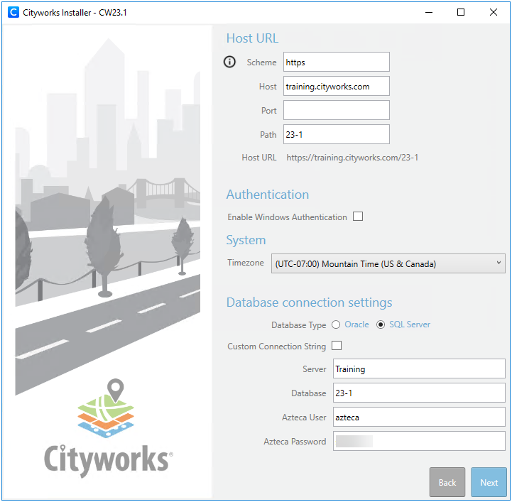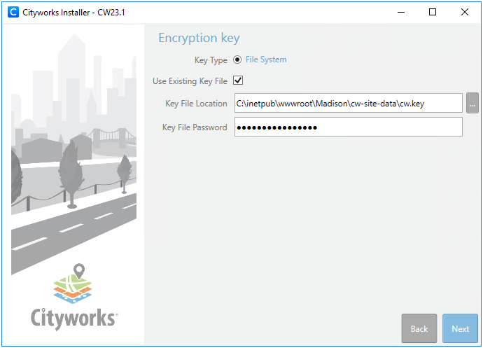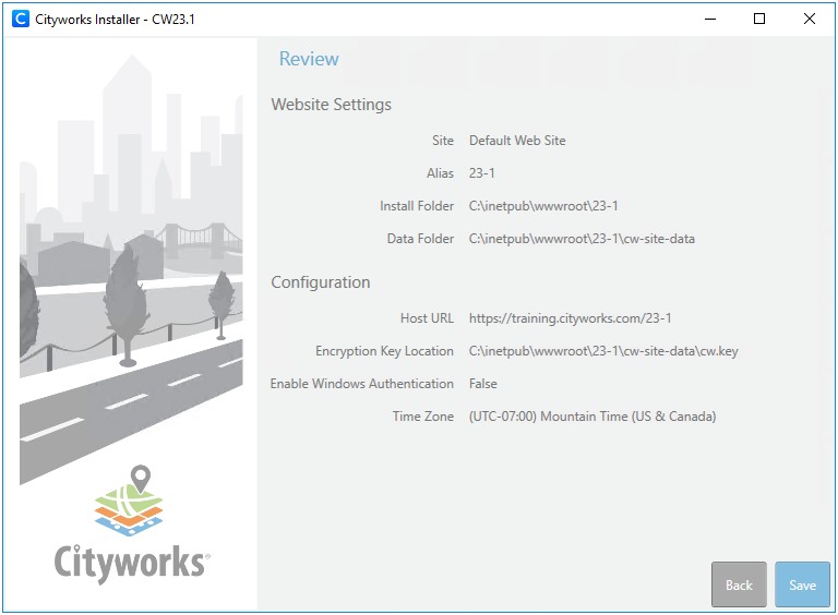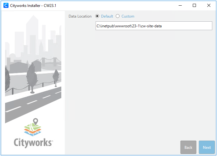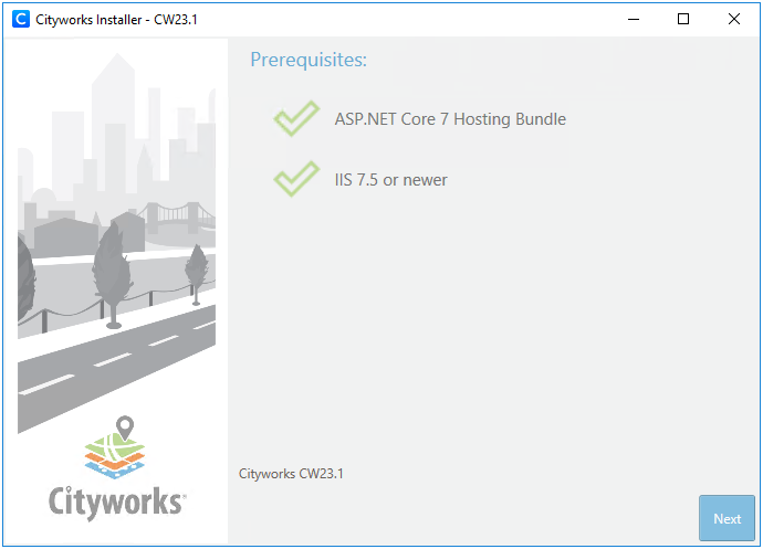 Existing Cityworks 23 sites can be updated using the installer, even though there is only an Install option. During the process, the 23 site is overwritten with the newer version.