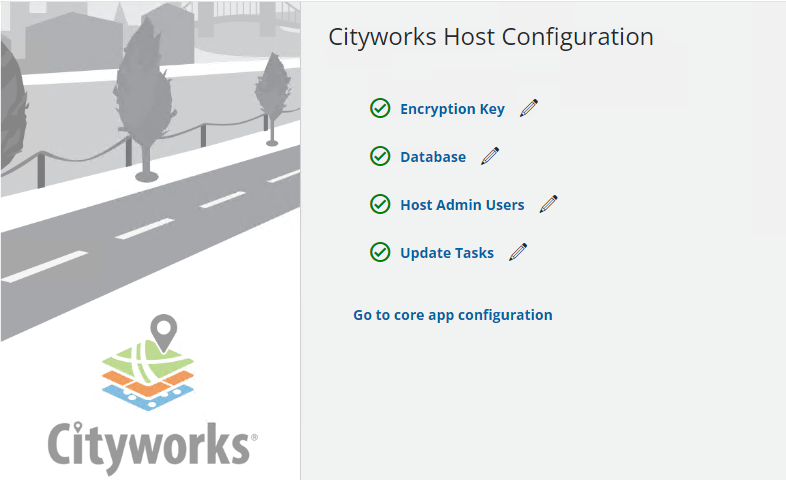 TIP: If the license needs to be updated, click Go to core app configuration and click the edit icon next to Cityworks License to update it.