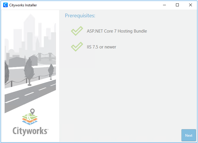 If all prerequisites are properly installed, two green check marks appear.