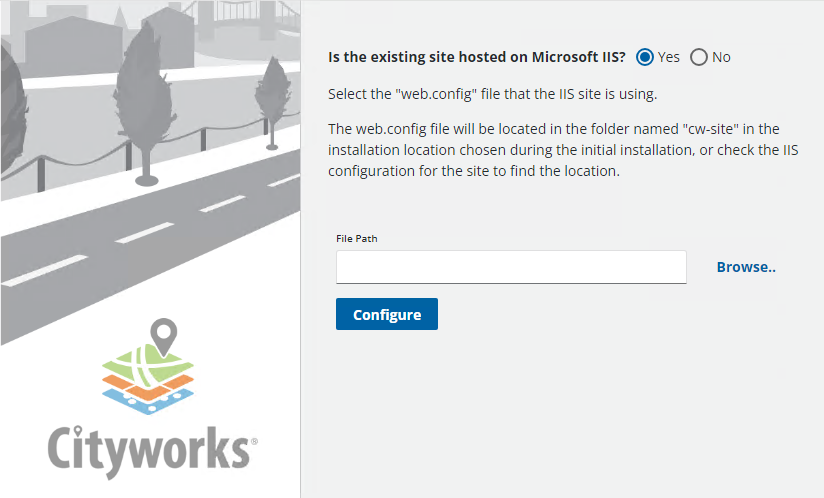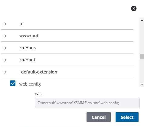 1. Enter the File Path or click Browse, navigate to the web.config file, select it, and click Select.