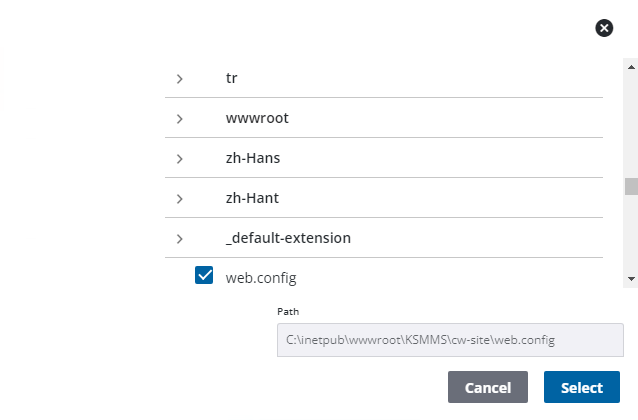 1. Enter the File Path or click Browse, navigate to the web.config file, select it, and click Select.