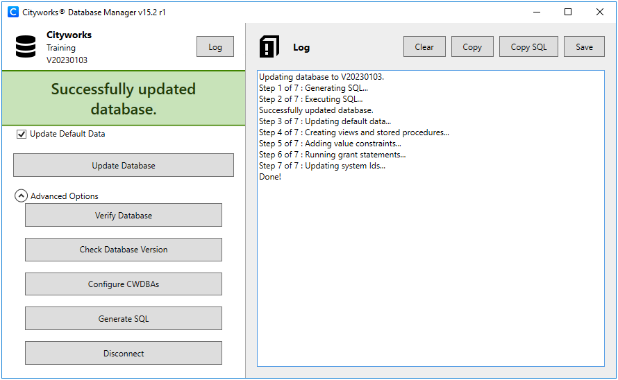 Once the six steps have been successfully completed, users receive a message indicating that the database was successfully updated. If not, the log shows where any issues were encountered.