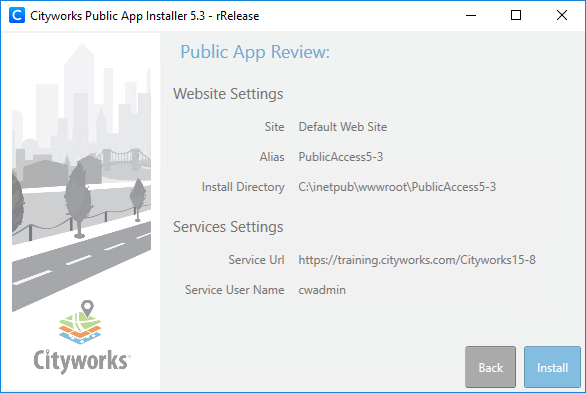 Follow these steps to install the Public Access site for use with PLL. For more information on configuring Public Access once it's installed, see Public Access Setup Guide on MyCityworks.