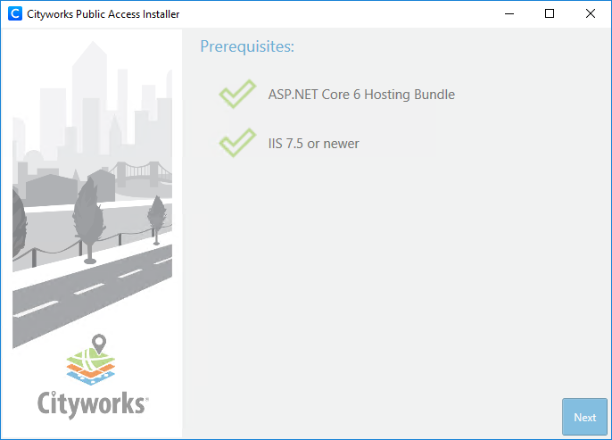 • ASP.NET Core Runtime 6.x.x Hosting Bundle is required to run the Public Access site. You can have multiple .NET packages installed, but the installer will not run if you only have .NET 6 installed.