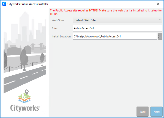 Follow these steps to install the Public Access site for use with PLL. For more information on configuring Public Access once it's installed, see Public Access Setup Guide on MyCityworks.