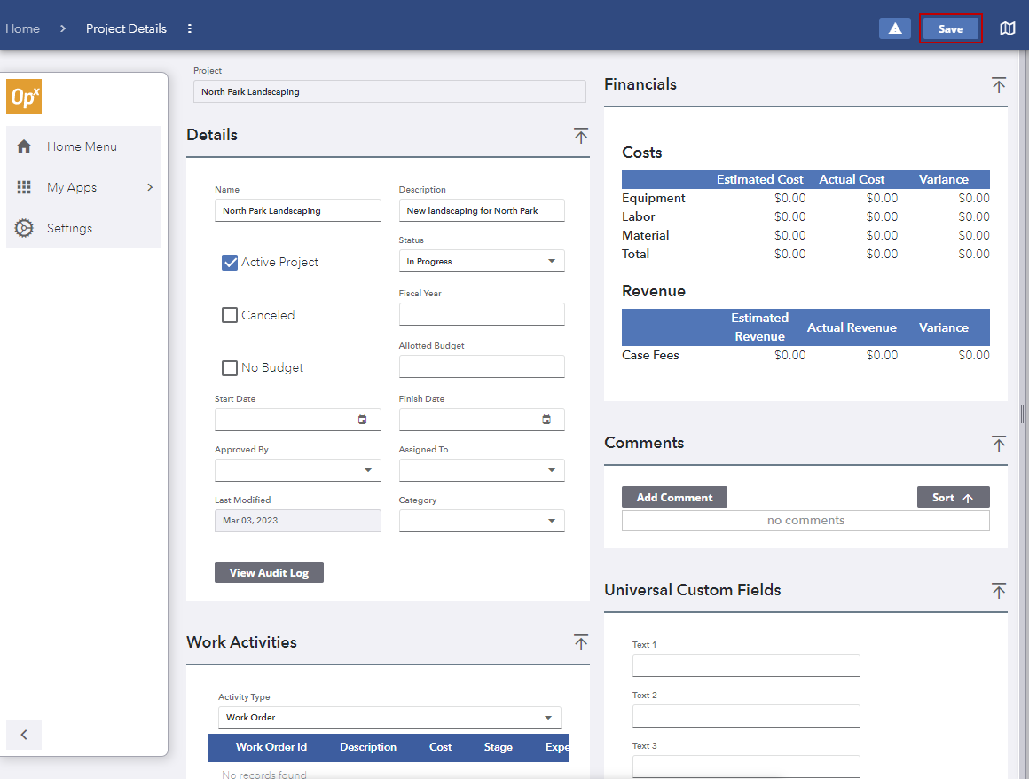 1. Open the desired project. After creating a project, the Project Details page automatically. See Open Project Details for more information.