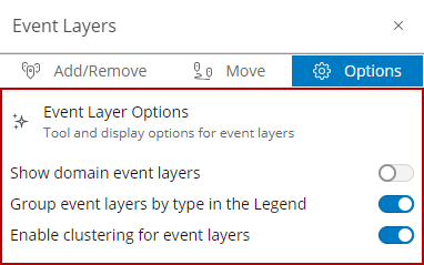 1. Select Show domain event layers to view all event layers made available in the domain by an administrator.
