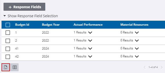 2. Click Export CSV to download the results for the matching response fields.