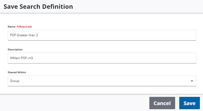 - Select whether the saved search should be Shared Within the Domain, Group, or User.