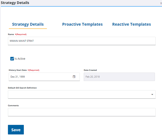1. If desired, enter any Comments regarding the maintenance strategy.