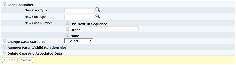 • Remove Parent/Child Relationships: Select to remove any parent/child relationships from the selected case(s).