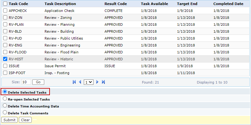 IMPORTANT: A task that has been completed cannot be removed.