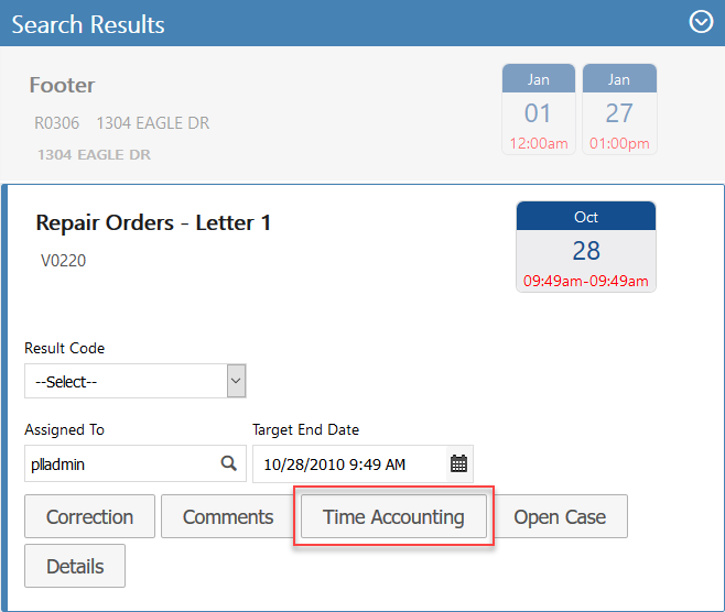 2. Once you have performed a search, click the task you want to add time accounting information to.