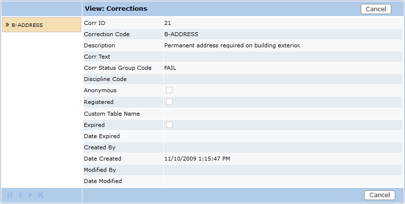 - The View: Corrections panel displays all the basic information about the checklist line item.
