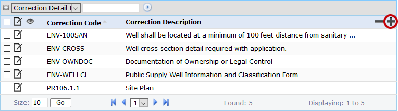 - When the Correction Detail sub panel appears, click Add record at the top of the sub panel.