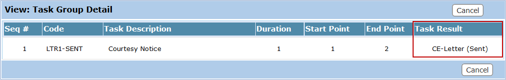 The View: Task Group Detail panel displays all the information pertaining to a task. In addition to the information displayed on the expanded task group sub panel, this panel lists the task result associated with the task.