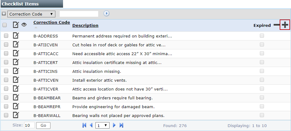 - On the Checklist Items panel, click Add record at the top of the panel.