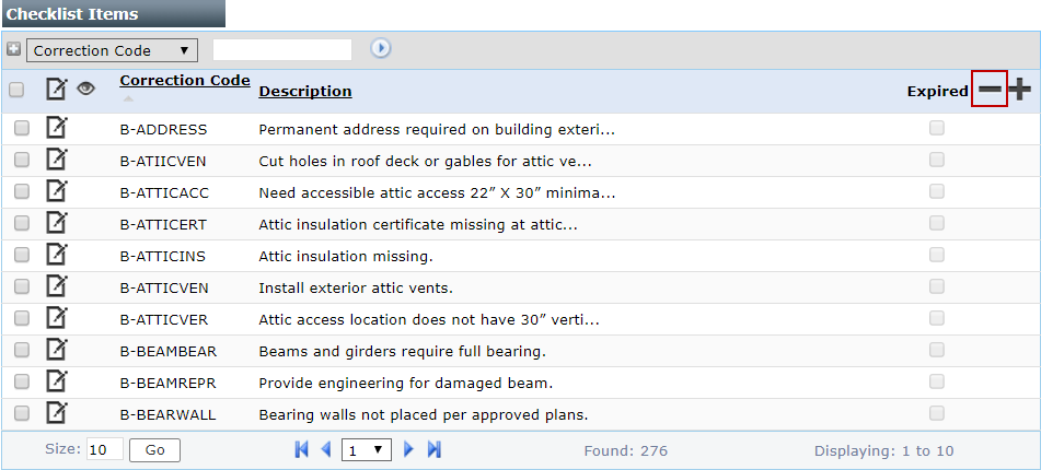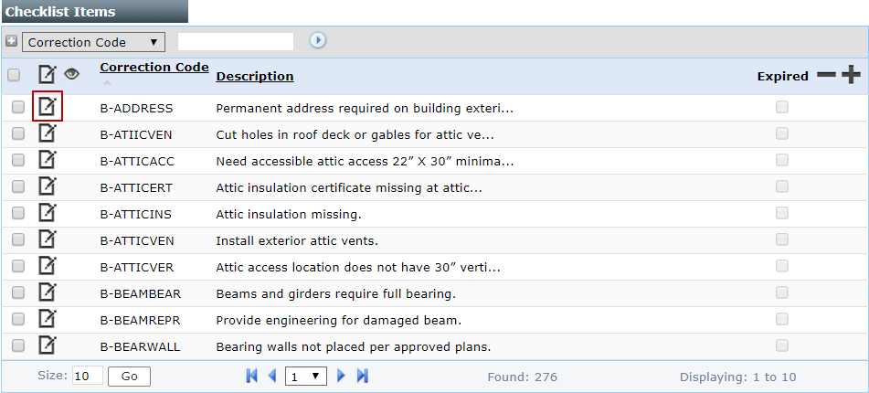 - On the Checklist Items panel, click Edit record next to the checklist line item you wish to remove.