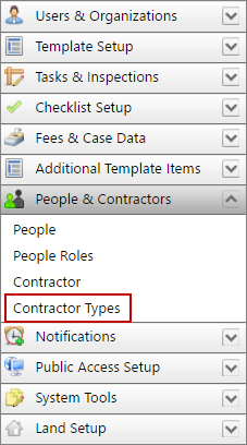 - On the PLL Admin page, click People & Contractors on the PLL Admin menu panel and select Contractor Types.