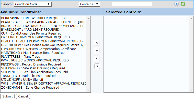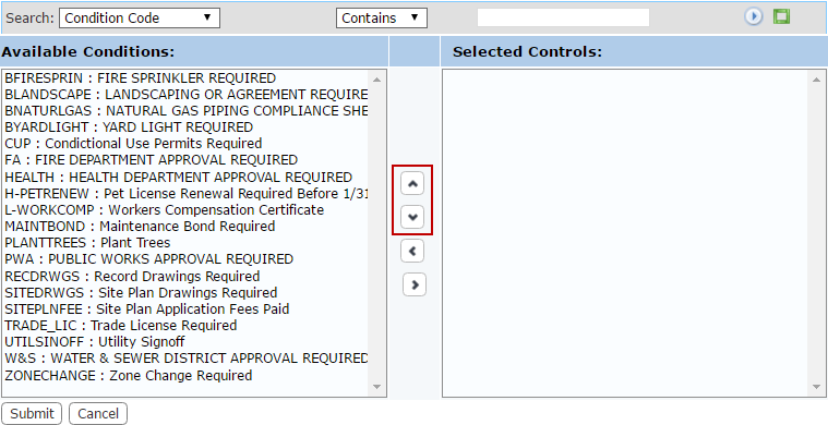 You can move a items up or down in the Selected Controls field by selecting the item you wish to move and then clicking Move selection up or Move selection down until the item is in the desired place. These items will appear on the Application Input and Summary pages in the same order as they appear in this field.