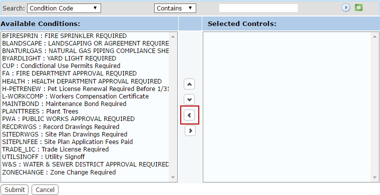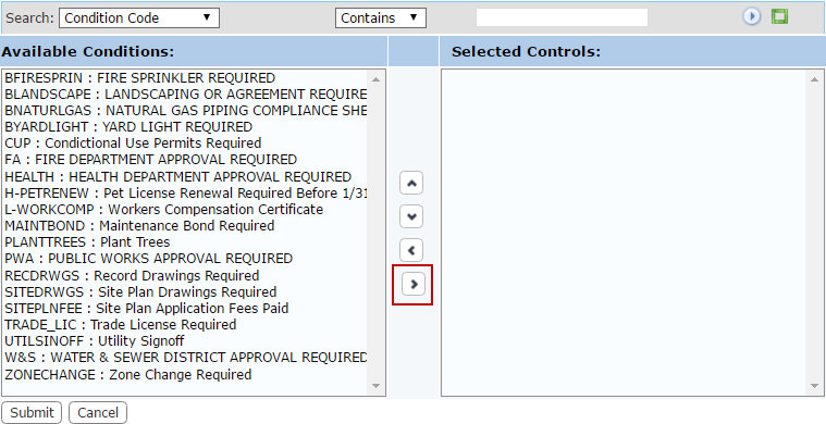 - When you have selected the items you want, click Move highlighted item(s) to Selected List to add them to the Selected Controls field.
